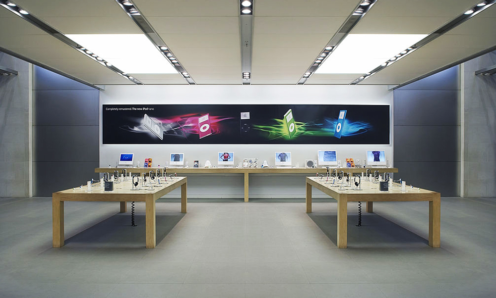 Siedemnaście lat później postanowił użyć tego samego kamienia, aby pokryć (drewniane) podłogi wszystkich sklepów Apple.
